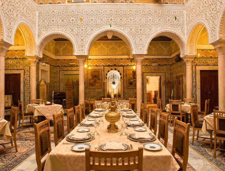 Niché dans les dédales enchanteurs de la Médina de Tunis, Essaraya n'est pas simplement une adresse gastronomique, c'est un voyage dans le temps. Entre murs séculaires et architecture arabo-andalouse, nous perpétuons l'art de vivre tunisois. Que ce soit pour signer un contrat décisif ou célébrer l'union d'une vie, Essaraya offre le cadre majestueux que vos moments importants méritent.